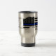 Uma caneca de viagem feita sob encomenda que caracteriza uma linha azul fina bandeira americana indicativa da polícia e da polícia. A bandeira parece rasgada para fora da caneca própria em um efeito 3-D do estilo do falso. Debaixo desta bandeira é um ponto para seu ou o nome do seu receptor do presente em uma pia batismal afligida suja do estilo. Você igualmente tem a opção de remover o teste padrão cinzento da listra usando a função da personalização e clicando o símbolo do "olho" da visibilidade.
