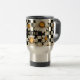 Retro Groovy Daisy Checkerboard Personalised Name Caneca de viagem apresenta um padrão de margarida de entalhe em um plano de padrão de tabuleiro preto e branco com seu texto personalizado ou nome personalizado no centro. Perfeito como presente para a família e amigos no Natal, aniversário, feriados, Dia de as mães, colegas de trabalho e muito mais. Criado por ©Evco Studio www.zazzle.com/store/evcostudio