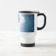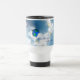 Esta caneca de viagem tem uma pintura espacial ilustrando a linha do antigo hino, "Ele tem o mundo inteiro em Suas mãos".