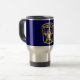 Esta caneca é decorada com um crachá policial genérico com lugar para colocar o nome de uma cidade ou pessoa.