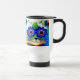 Caneca de viagem com a pintura de animais de Louis Wain: Olhos de Flor Gato (1860-1939). Um gato arco-íris sorri muito. Flores azuis cobrir seus olhos. Um presente maravilhoso para amantes de gatos e arte inglesa.