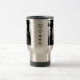 Caneca de viagem de prata com uma foto de patinagem preto e branco em cada lado