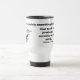 Esta caneca de viagem para o pescador ou pescador tem uma imagem negra de um peixe e anzol contra fundo branco, e uma citação de Washington Irving, um escritor americano (1783-1859), sobre o sentimento pacífico e tranquilo de uma experiência durante a pesca: Certamente há algo no anjo que tende a produzir uma serenidade da mente.