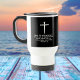 Pastor Appreciation Travel Mug with Handle: Three Nail Christian White Cross | 2 Timothy 4:2 "Preach the word..." KJV Bible verse. Modern black and white design.