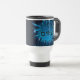 Texto escuro lendo "Shalom" (Hebraico: paz) sobreposto a uma imagem fractal azul mais clara. Adicione o seu próprio texto adicional no verso.