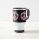 Um sinal de paz floral em tons de rosa, amarelo, laranja, roxo, verde, branco e preto.