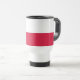 Esteja na moda com uma caneca personalizada para viagem de aço inoxidável. Esta caneca para viagem à prova de derrame tem uma tampa plástica removível. 15 oz. Somente lavagem à mão. Importado.