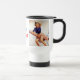 Uma caneca de viagem com duas ilustrações femininas vintage, em ambos os lados e texto em dois, coordenando cores. Uma caneca de viagem conveniente e inspirada para o trabalho...jogar...ou ambos?
