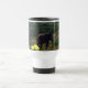 Se você ama os grandes animais da selva, você vai gostar desses enormes elefantes da madeira nesta caneca. Flores amarelas acendem o fundo natural.