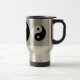 Yin Yang Mug. Esta caneca de viagem de aço inoxidável é decorada com um símbolo Yin Yang preto e branco. "Na filosofia taoista, yin e yang surgem juntos de uma quiescência inicial ou de um vazio e continuam caminhando em paralelo até que a quiescência seja alcançada novamente. Por exemplo, soltar uma pedra numa piscina calma de água simultaneamente levanta ondas e depressões mais baixas entre elas, e essa alternância de pontos altos e baixos na água vai irradiar para fora até que o movimento se dissipe e a piscina volte a se acalmar. Yin-yang, portanto, são sempre qualidades opostas e iguais. Além disso, sempre que uma qualidade atinge seu pico, começará naturalmente a se transformar em uma qualidade oposta: grãos que atingem a altura do cheio no verão (yang completo) produzirão sementes e morrerão no inverno (yin completo) em um ciclo sem fim" - Wikipedia. Uma ideia de presente de excelente.