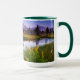 Esta foto mostra Schwabacher Landing na sombra das montanhas Grand and Teewinot e é reflexo na piscina do rio Cobra.