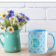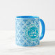 Caneca Texto Branco do Impressão de Trellis Azul Moderno