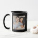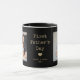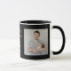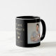 Esta simples caneca de Dia de os pais de ouro preto e falso, pela primeira vez, o pai apresenta um fundo preto escuro com letra falsa de máquina de escrever dintage dourada que diz "Primeiro Dia de os pais". Adicione duas fotos do novo papai e do bebê, com espaço para personalizar com nomes e anos.
