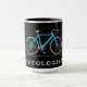 Texto de cicologista com bicicleta azul-turquesa em linha preta. A cor de fundo pode ser alterada.