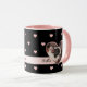 Faça cada gole especial com esta charmosa caneca de Dia de os namorados personalizável! Com delicados corações cor-de-rosa sobre um fundo preto elegante, essa caneca inclui texto personalizado e um espaço fotográfico. Perfeito para café da manhã, chá, ou como presente pensativo para amantes de cachorro. Adicione o nome e a foto do seu filhote para uma única vez! Sinta-se livre para entrar em contato com o criador se você encontrar algum problema com a personalização necessária. Desenhado por Anna Szalacha, Happy Ann Design.