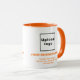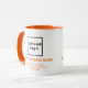 Mug de combinação de cor laranja que você pode personalizar para colocar seu nome comercial, logotipo, endereço e número de telefone. Caneca personalizável que você pode usar em seu compro de café, restaurante ou restaurante para conscientizar o nome da marca enquanto seus clientes gostam de tomar café ou chá aromático e saboroso que você serviu a eles. Como produto de promocional, dê item ou presente a seus clientes ou clientes, uma estratégia de marketing para anunciar sua empresa ou promover sua marca. Verifique a aparência nos lados frontal e traseiro após carregar o logotipo e os textos de digitação. Se a aparência lhe agrada, você pode colocar seu pedido agora. Se você precisar redimensionar e mover o logotipo e os textos para o ajustado nesta caneca ou no tamanho e estilo que você escolherá, mude na ferramenta design. Você também pode fazer outras alterações de acordo com sua preferência na ferramenta design, como alterar a cor da fonte e o estilo da fonte.