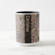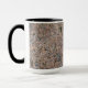 A foto delicada da textura da rocha cobre a maior parte desta caneca. Oposto do punho, há uma bandeira conhecida vertical semitransparent. A bandeira é preta, e o texto é - as cinzas a se iluminar - marrom claro.