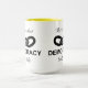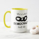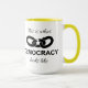Combo mug featuring a design with a broken chain link and text saying "This is what democracy looks like". The design allows you to change the color of its components as well as resize it or change the color of the background.