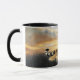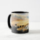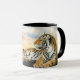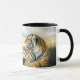 Vintage asiática ilustra um tigre descansante observando o céu da manhã se iluminar.