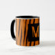 Uma caneca de impressão animal divertida, feita em um padrão de risca de tigre preto e laranja. Personalize o monograma personalizado de uma letra, para atender às suas necessidades. ideia de presente de excelente.