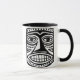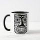 Uma caneca com um design original corajoso da máscara de Tiki do efeito do woodcut. Este design alegre do divertimento é repetido em ambos os lados.
