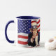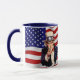Lâmina branca e marinho de 11 oz. combo com imagens vintage da década de 1940 do Tio Sam numa imagem da bandeira americana. Ver placa de papel correspondente, vidro fotografado e portas copos. Veja toda a coleção Patriótica de Mug 40s na COMIDA/BEV | Seção pratos.
