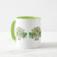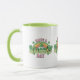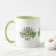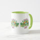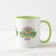 Uma caneca com uma Rua. Imagem temática do Dia de Patrick. Um design de estilo retrô grunge que diz: Tenha um dia de sorte. Com um arco-íris colorido atrás. Palavras escritas em uma víbora retrora gorda arredondada. Cor rosa e verde.