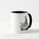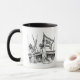 Mug with drawing of two German sailors and the coat of arms of the famous German battleship Tirpitz of world war II with the name of the ship written with fraktur letters.