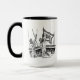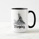 Mug with drawing of two German sailors of the famous German battleship Tirpitz of world war II and the name of the ship written with fraktur letters.