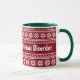 Caneca com TOC Transtorno Obsessivo de Natal. Caneca personalizada de 11oz com padrão de Suéter Feio de Natal para café, chá ou chocolate quente. Ideia de presente engraçado de Natal para homens, mulheres e crianças modernos. Cores de fundo vermelhas e verdes ou personalizadas. Acessórios para bebidas com design fofo e aconchegante de tricô nórdico para casa ou escritório. Também disponível como xícara superdimensionada e canecas grandes para viagem. Adicione nome, monograma, saudações de temporada ou citação engraçada. Feliz Natal! Letras estilizadas com tipografia de neve.