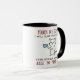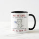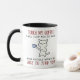 Design de caneca de café engraçada com o meme Touch My Coffee e um gato ranzinza segurando uma caneca de café pontilhada de polca azul.