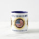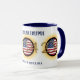 Personalizável 2024 TOTAL SOLAR ECLIPSE USA Coffee Mug, com TEXT PERSONALIZÁVEL, para celebrar o Total de Eclipse Solar sobre os EUA Continental, Canadá e México em abril de 2024. O TEXTO PERSONALIZÁVEL lê TOTAL SOLAR ECLIPSE E NÓS ASSISTIMOS NELE NOS EUA, que você pode mudar para sua mensagem personalizada preferida. A design mostra um eclipse solar com efeito dourado 2024 no meio e a bandeira dos EUA atrás dela. Comprar um eclipse solar patriótico dos EUA Coffee Mug para toda a família ou para os seus convidados de festa! A totalidade valerá a pena! Ofertas de festa e lembranças disponíveis nos EUA.