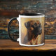 Esta caneca celebra o majestoso cachorro Bull Mastiff! Dois lados da caneca têm um belo retrato de um Mastiff marrom contra um fundo abstrato. As cores predominantes são laranja, amarelo e tons de marrom e bronzeado. No centro está um roteiro que diz Bull Mastiff, mas você pode mudá-lo ou mesmo personalizá-lo, se quiser.