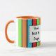 Uma caneca colorida para começar o dia e pedir aos seus filhos ou aos seus colegas de trabalho uma pequena cooperação. O local do texto é personalizável.