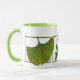 Três folhas nesta caneca criam um humor tranquilo. Gráficos de uma folha de ginkgo, folha de carvalho e folha de carvalho.