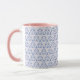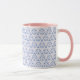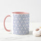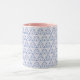 Triângulos decorativos em design azul, branco e roxo, com renda decorativa.