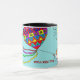 Um coelho pequeno bonito vestido na roupa ucraniana tradicional, pendura sobre a um balão dado forma coração do pysanka que o tome que sabe onde. Personalize esta caneca para alguém que deixa seu bloco.