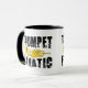 O trompete fanático em texto quebrado e a imagem de uma trompete é um design de música humorística para músicos de latão, professores de música e estudantes de escolas em concertos, jazz e bandas de marchar.
