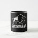 Um design preto-e-branco arrojado mostrando uma silhueta de bisão carregando com a frase "Thunder Up" embaixo. Perfeito para os fãs do Roubo de Oklahoma City que apreciam designs minimalistas e impactantes.
