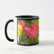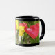 Esta bonito caneca de café floral apresenta uma fotografia de tulipas de franja vermelha e amarela. A foto foi tirada usando macro fotografia, resultando em detalhes tão brilhantes que você pode ver as pequenas bordas e as sutis mudanças na luz atuando sobre a tulipa vermelha central. A foto está em cada lado da caneca e está cercada por uma borda preta. O design é mostrado aqui em uma caneca de dedo preto e branco, mas também está disponível em outros estilos de canecas, incluindo canecas de viagem e lindas canecas de vidro fosco.