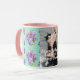 Tuxedo Cat Engraçado Dança Feliz Aniversário Mug Aqua. Uma foto e um design floral. Um dever para qualquer amante de gato!