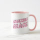 Esta caneca de café diz "Graça Incrível" em ambos os lados em uma fonte rosa.