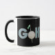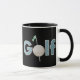 Caneca Golfing para amantes do golfe e fãs de esportes. Logotipo do golfe em máscaras macias do azul no preto