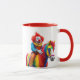 Un clown rigolo avec un gros nez rouge, un grand sourire et un maquillage blanc éclatant chevauche un cheval multicolore aux rayures vives, son costume coloré avec des manches bouffantes et des boutons brillants attire tous les regards, ses cheveux rouges ébouriffés ajoutent une touche amusante tandis qu’il s’accroche aux rênes roses de sa monture magique, il fait des grimaces rigolotes et semble prêt à faire une nouvelle farce dans un spectacle de cirque plein de rires et de surprises incroyables.
