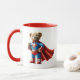 Caneca Un ours super-héros tenant une peluche.