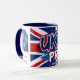 Celebrate your love for the United Kingdom with this Union Jack British flag coffee mug. Featuring a stylish, slightly distressed vintage design, this mug perfectly captures the timeless charm of Great Britain. Whether you are a fan of London’s iconic style, a British expat living abroad, or simply a lover of Anglophile culture, this high-quality ceramic mug is a must-have for your morning tea or coffee. Personalize it with your name or a custom message on the back to create a unique UK travel souvenir or a thoughtful gift for a friend. Durable, microwave safe, and dishwasher friendly—bring a touch of British elegance to your kitchen or office!