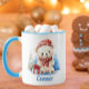Torne os feriados mais confortáveis com esta caneca de urso de Natal personalizada! Apresentando um doce urso de aquarela com um chapéu vermelho e cachecol, segurando um presente numa cena de neve, esta caneca festiva inclui o nome do seu filho numa fonte azul macia. Perfeito para cacau quente nas manhãs infantis, esta caneca personalizada faz um presente animador para bebês, crianças ou netos. Uma adição encantadora a meias, caixinhas de véspera de Natal ou conjuntos de presentes festivos.