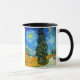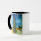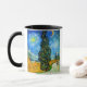 Café Mug com a Pintor de Óleo Road com Cypress e Star (1890) de Vincent van Gogh, também conhecida como Country Road in Provence by Night. Pessoas caminham ao longo de uma estrada que passa por uma bela ciprestes sob um céu azul noturno com lua amarela e estrelas. Um presente fantástico para fãs de Impressionismo Poste e arte holandesa.