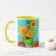 Mug que apresenta a pintura viva de Vincent van Gogh, que representa um buquê de girassóis num vaso verde. Parte da sua versão inicial na série Arles Sunflower. Um presente de excelente para fãs do Poste-impressionismo, pinturas florais e arte holandesa.
