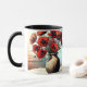 Vaso de flores. Cachorros vermelhos num vaso branco sentado numa mesa. Cartoon estilo quadrinhos bonito Poppies.
